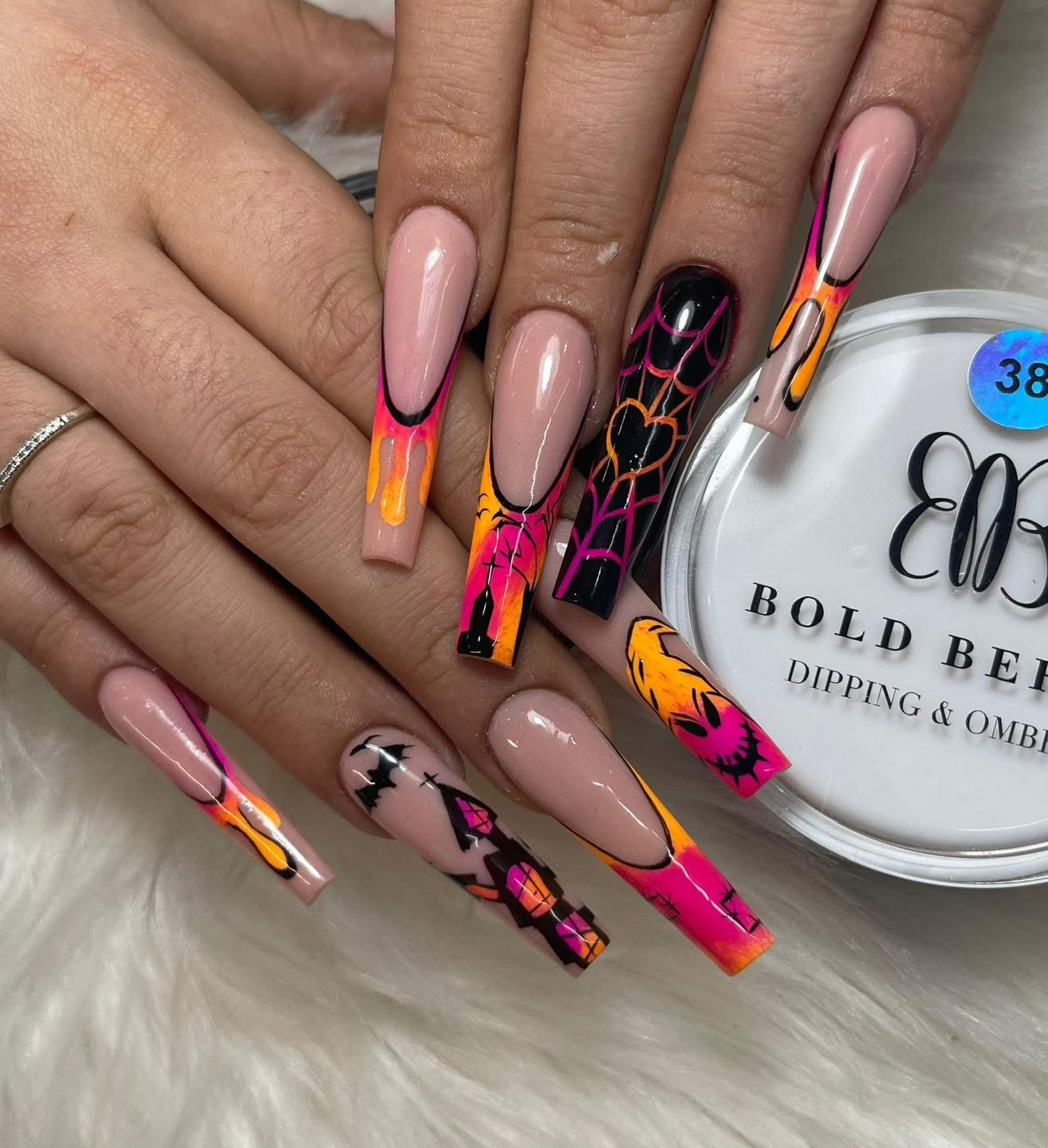 Las uñas acrílicas se crean al mezclar un polvo acrílico con un líquido especial (monómero) que forma una pasta moldeable. Esta mezcla se aplica sobre la uña natural o sobre un tip (extensión), y se moldea a la forma deseada. Luego se endurece al aire, sin necesidad de lámpara UV.